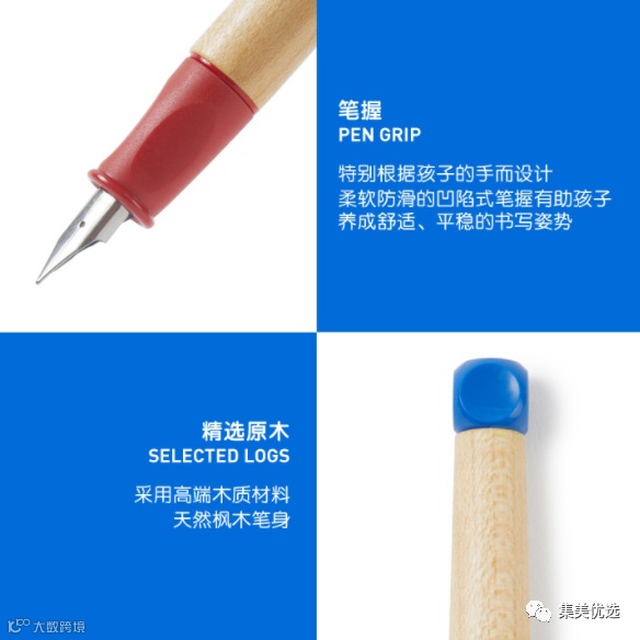 采用人体工程学三角笔握,并使用防滑软橡胶,粗厚的笔握确保手指握住正确位置。笔杆使用枫木木材制成,表面涂层为无毒哑光漆。趣味十足的设计,书写乐无穷。