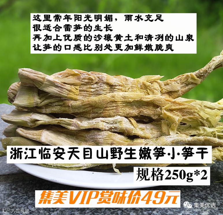 【大牌团购】浙江临安天目山野生嫩笋小笋干250g*2 原价:65元 VIP /黑卡M1会员 福利补贴价:49元