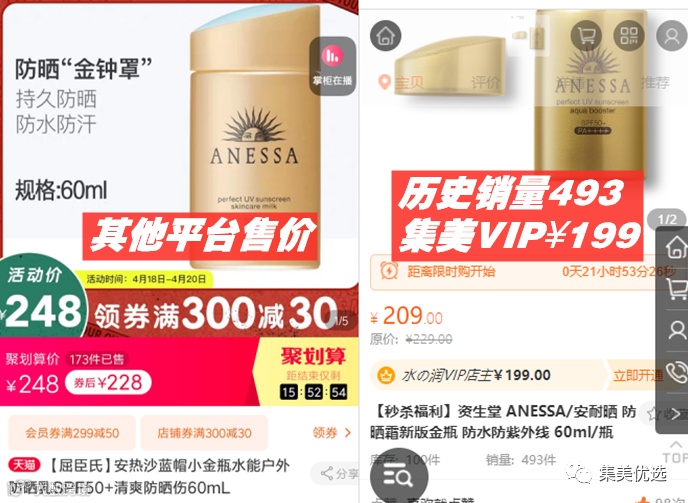 【限时秒杀】资生堂 ANESSA/安耐晒 防晒霜新版金瓶 防水防紫外线 60ml/瓶 原价:229元 VIP /黑卡M1会员 福利补贴价:199元
