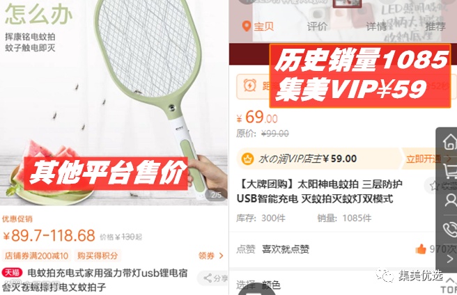【大牌团购】太阳神电蚊拍 三层防护 USB智能充电 原价:99元 VIP /黑卡M1会员 福利补贴价:59元