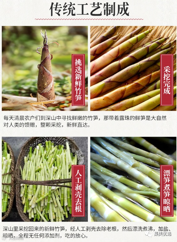 相传明代正德年间,天目笋干即为人称道。清康熙年间,禅源寺香客竞相购买,视为“蔬中珍品”,声誉鹊起。天目笋干中含有丰富的蛋白质、纤维素、氨基酸等微量元素,深受消费者喜爱。