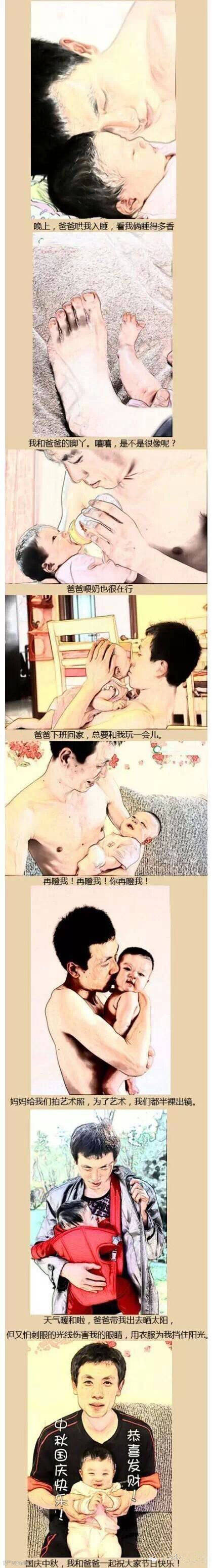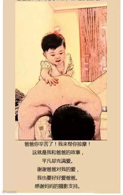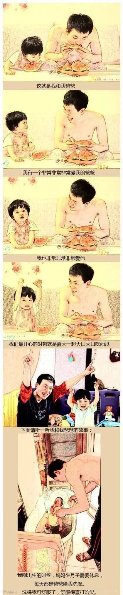 爸爸的故事虽然平凡却充满爱,谢谢爸爸对我的爱,我也要好好爱爸爸.爸爸你辛苦了!陪着宝宝一起长大是让全天下最幸福的事情!