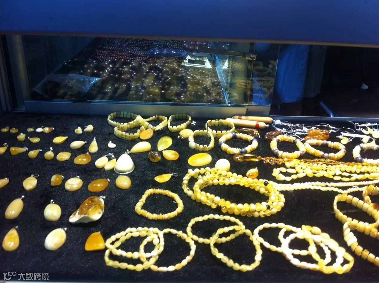 7.非洲展商称这是原汁原味的蜜蜡和琥珀制成的工艺品,以克计价。这些手串是蜜蜡材质,按重量计价,每克200元,简直跟黄金一样。