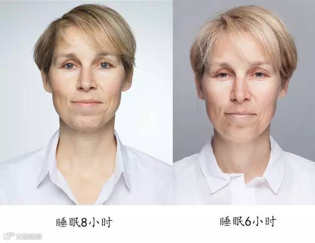 除了隐性问题,睡不好还有一个最直观的体现——会让你变丑, 据《每日邮报》,46岁的Sarah Chalmers参加了英国伦敦的一个睡眠学校的实验,连续五天只睡6个小时与睡满8个小时的区别是什么呢?请看对比照: