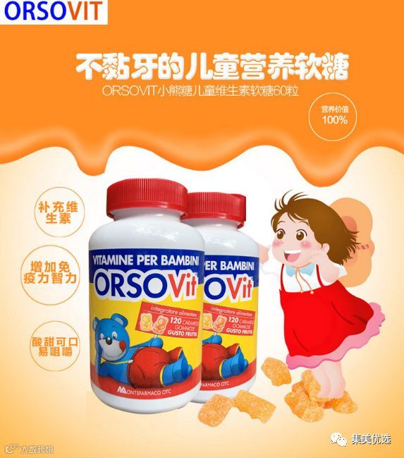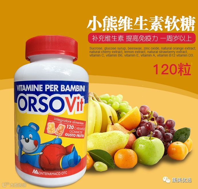 【福利团购】意大利ORSOVIT小熊糖多种维生素进口辅食儿童宝宝维生素软糖120粒