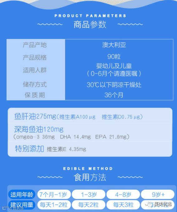 产品原料无化学成分添加,澳大利亚本土产品,选用极低深海鳕鱼作为原料,远离工业污染和垃圾,更为纯净,营养价值高,是优秀的鳕鱼肝油来源!