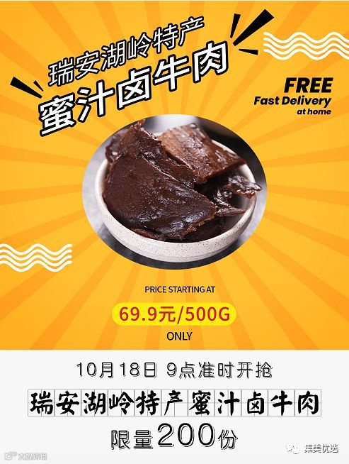 【福利团购】瑞安湖岭特产蜜汁卤牛肉 500g