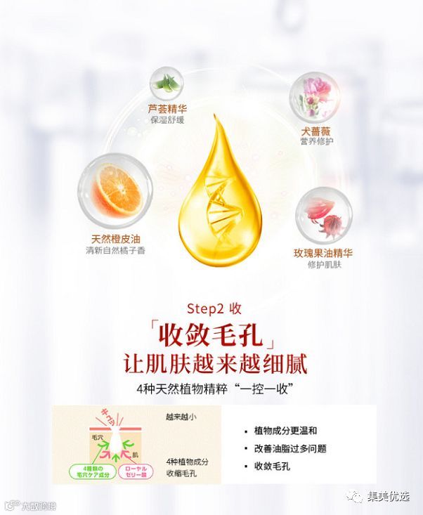 它内含的天然乳酸对肌肤亲和,能柔化清除角质, 同时清洁毛孔,防止黑头产生,预防青春痘。富含维生素C,能够抑制过剩皮脂,防止毛孔扩张。另含葡萄叶精华提取液,能有效收缩毛孔,紧致肌肤。天然芦荟玻尿酸,海洋胶原蛋白,能充分补充皮肤水分。