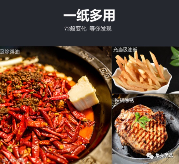 ✔纸巾吸水不易破,可快速吸干食物表面多余水分,比如煎鸡翅前就可以吸一吸水分,再也不用担心爆锅!
