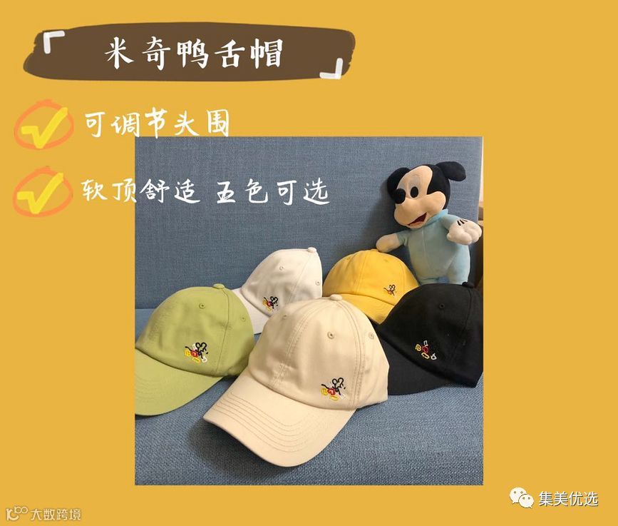 超美的5个色系,非常柔软有型,精选优质棉料,版型更加贴合头部,春夏是多彩的季节,搭配多彩的米老鼠帽子恰到好处