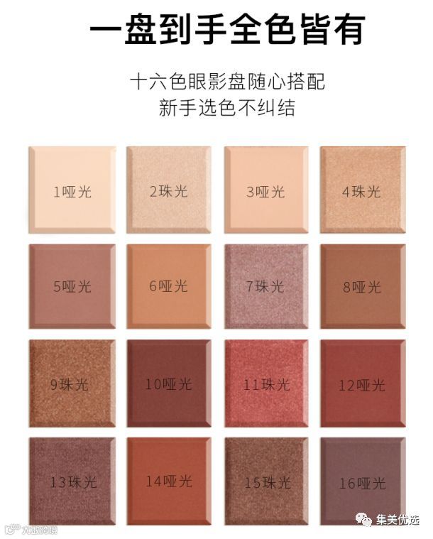 今年zui火的一款眼影,美妆达人强力推荐,香奶奶268替代,7个珠光+9个哑光粉质细腻不易飞粉,显色易上色,整体偏棕色调,一般妹纸都能驾驭,不会很夸张,很适合新手小白练手,还可以当眉粉,腮红,调光,侧影,真的是万用盘!