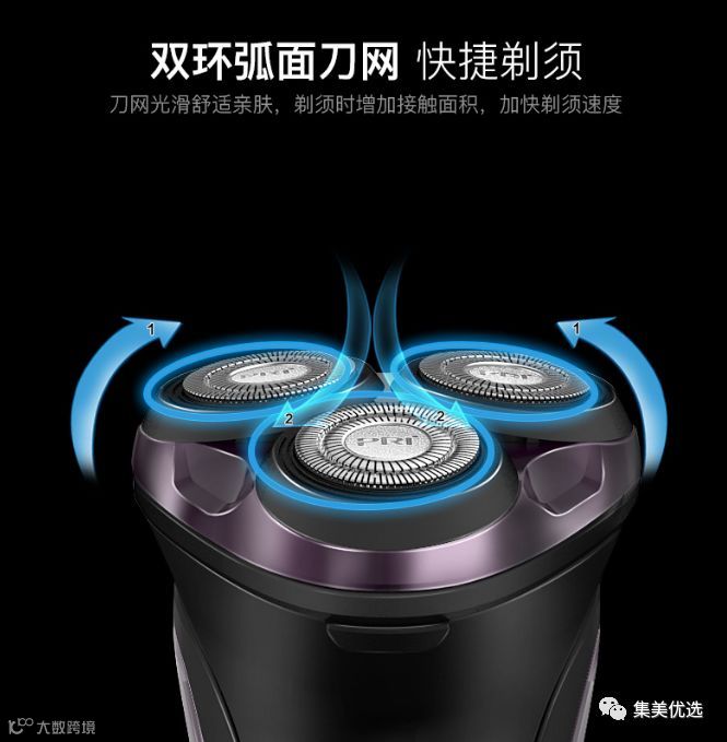 3头浮动剃须,双环弧面刀网,弹出式鬓刀,刀网光滑舒适亲肤,让洁净与舒适兼得。