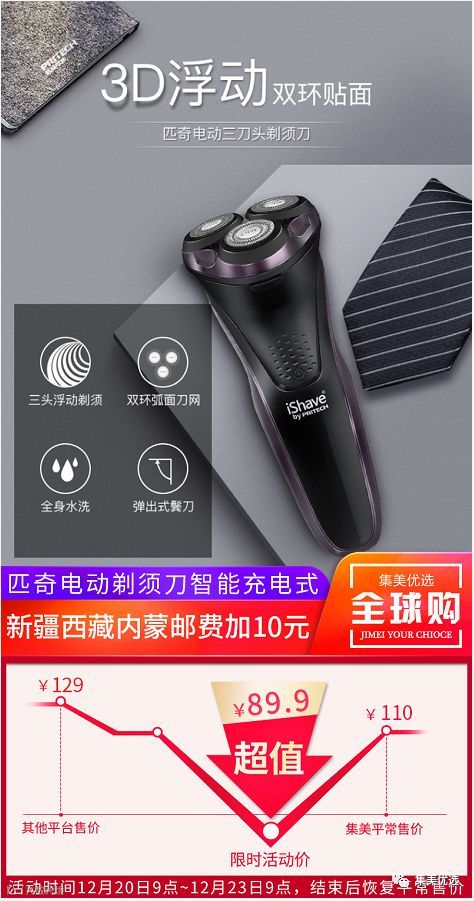 【福利团购】匹奇电动剃须刀男士刮胡刀全身水洗智能充电式