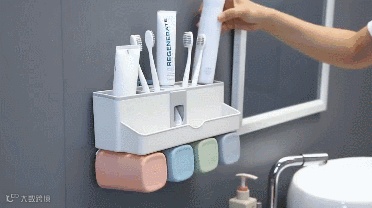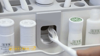 有了这款牙刷架,在将牙刷、牙杯、洗面奶等日常洗漱品统统收纳的同时,还具有自动挤牙膏功能,1秒挤牙膏不用拧盖,轻松get到好心情~~
