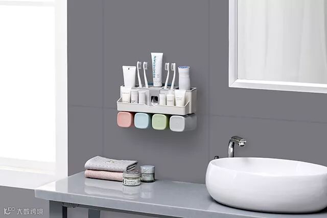 健康生活新概念 小身材大收纳!全自动挤牙膏全家漱口套装置物架。让您的洗漱台不再凌乱不堪...