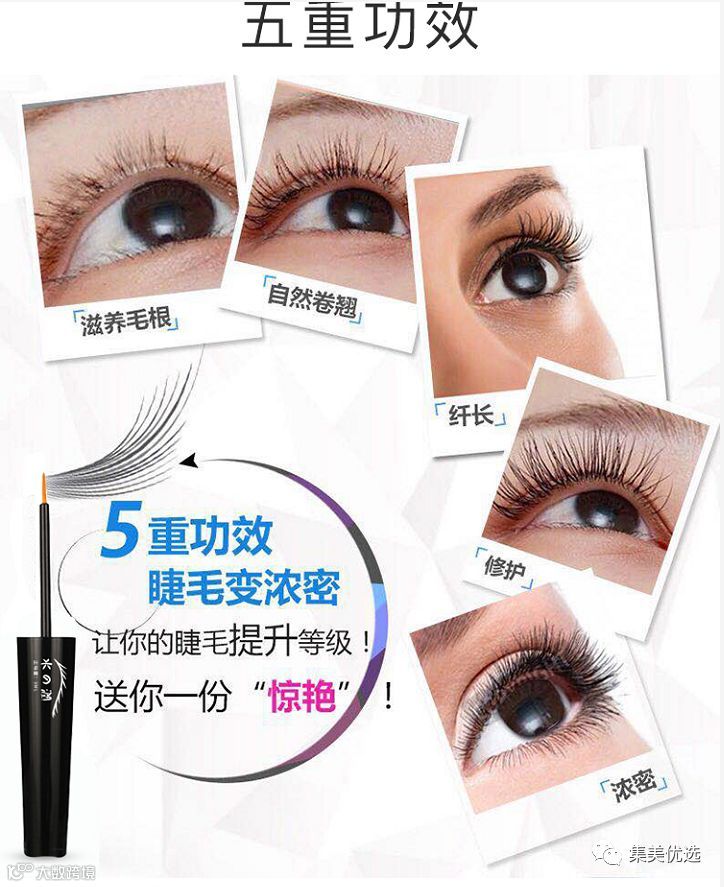 功效:使用后可以使睫毛变的又黑又浓密、最主要功效可以使睫毛长长、还可以修复嫁接后的损伤。