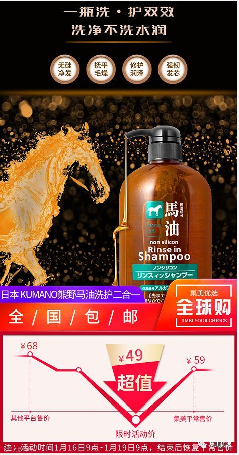 【福利团购】日本 Kumano熊野油脂马油无硅油洗护二合一