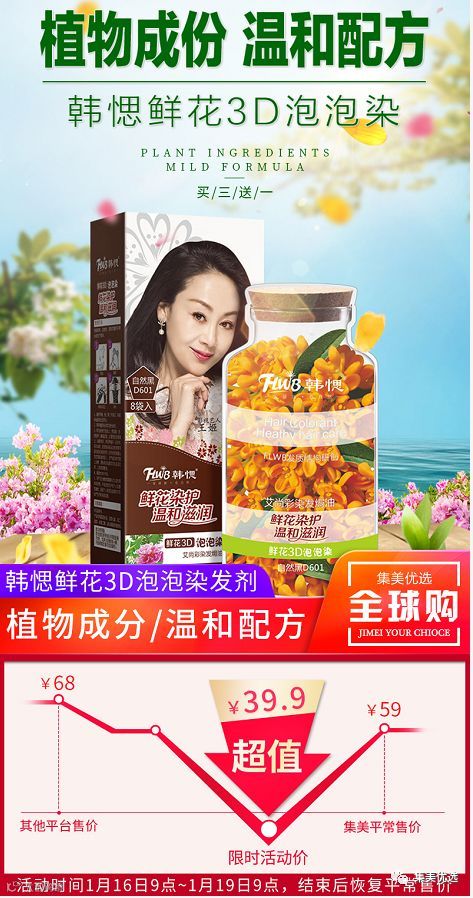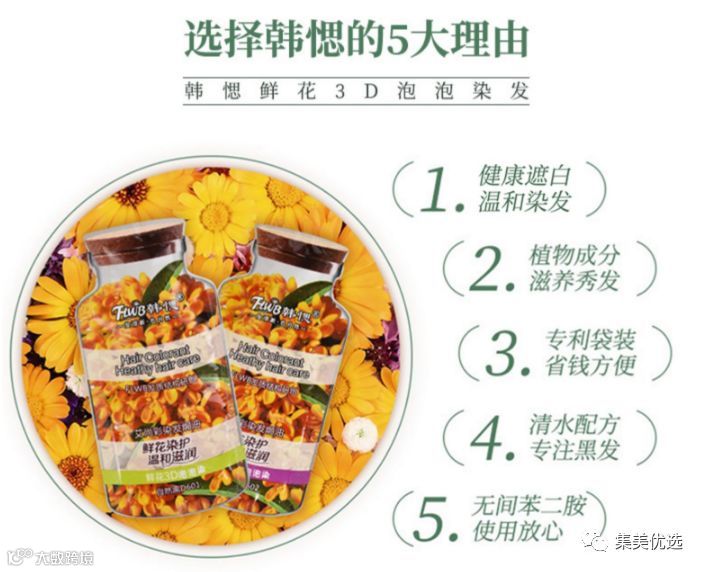 用果香、植物、鲜花等配方和植物提取精华,同时集洗发、染发、焗油、护发等多种功能为一体,全方位呵护秀发。
