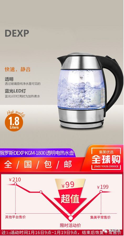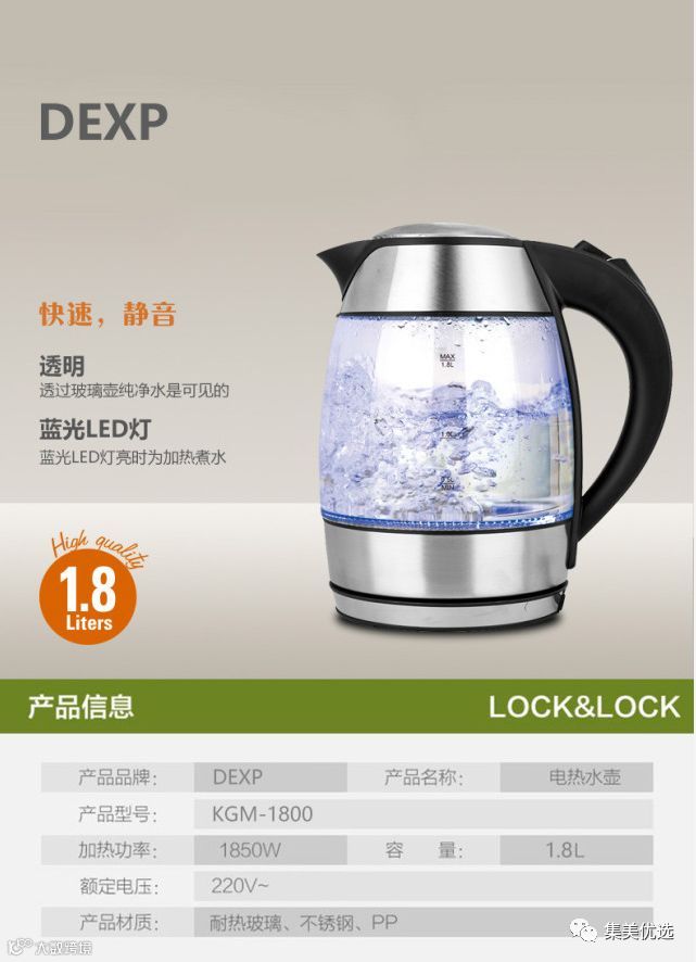 KGM-1800 透明玻璃蓝光电热水壶