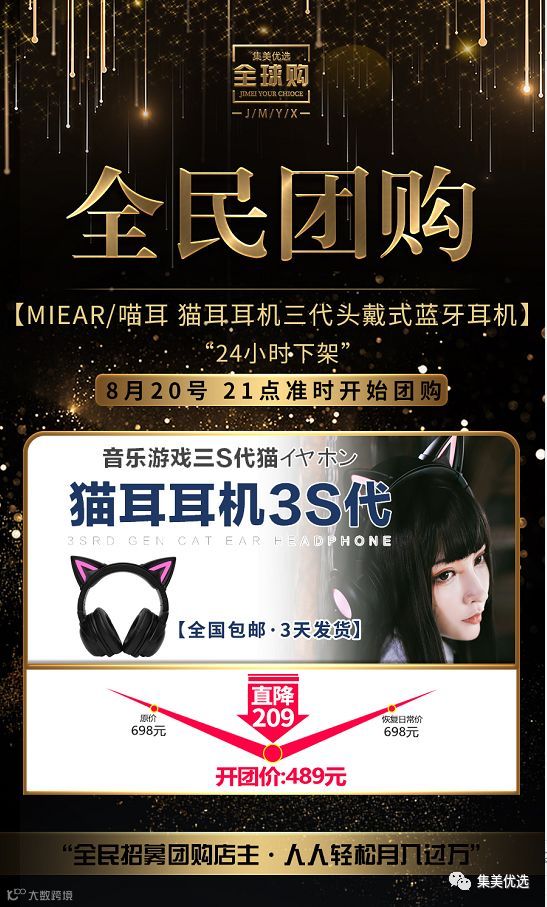 【品牌团购】MIEAR/喵耳 猫耳耳机三代头戴式蓝牙耳机可爱少女心耳机言生同款