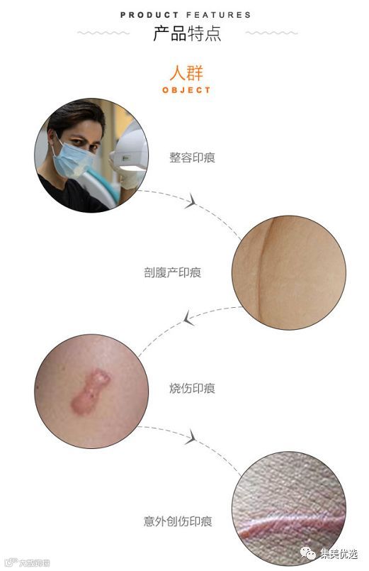 它适合创伤、烫伤、烧伤、纹唇、洗眉等形成的疤痕,改善患处之血液循环,吸收渗透,药后能迅速消除患处疼痛和压迫感,缓解肿涨。