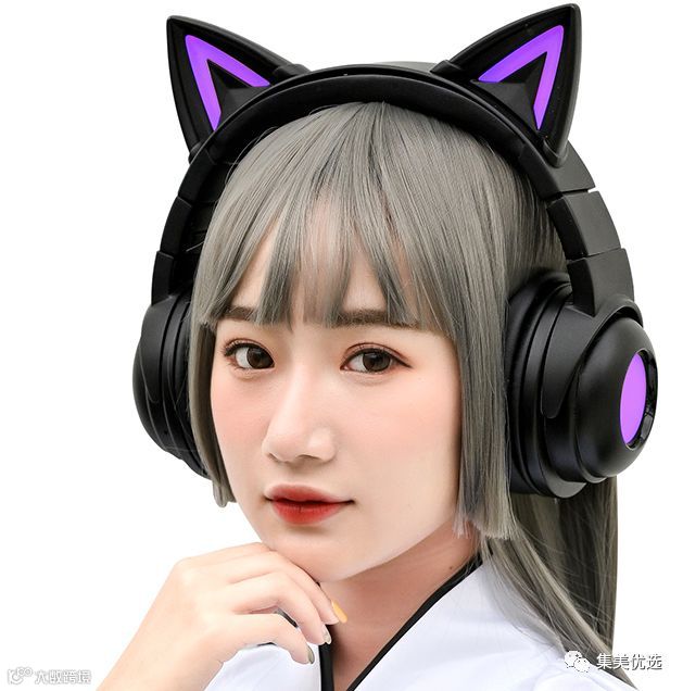 满满的电竞感,表示猫耳耳机很适合打游戏的时候使用。