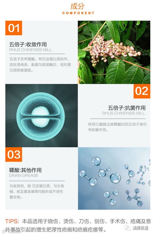 祛疤效果显著 得益于五倍子 ,五倍子是一款有解毒功效的中药,在控菌的同时能软化增生角质层,平滑印痕后就促进皮肤更新,最后改变皮肤结构,皮肤就变得光滑啦~