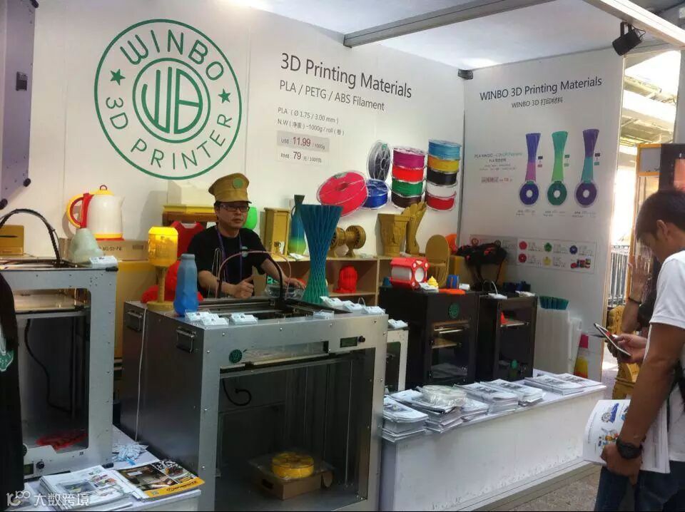 5. 在连接B区和C区的空中廊桥的一个展位上,一个做3D打印的参展商戴上特制帽子,用扬声器向过往采购商吆喝:“3D打印机正在打印,欢迎观看!”