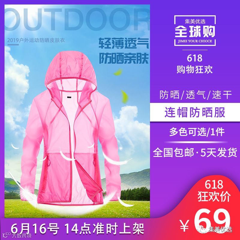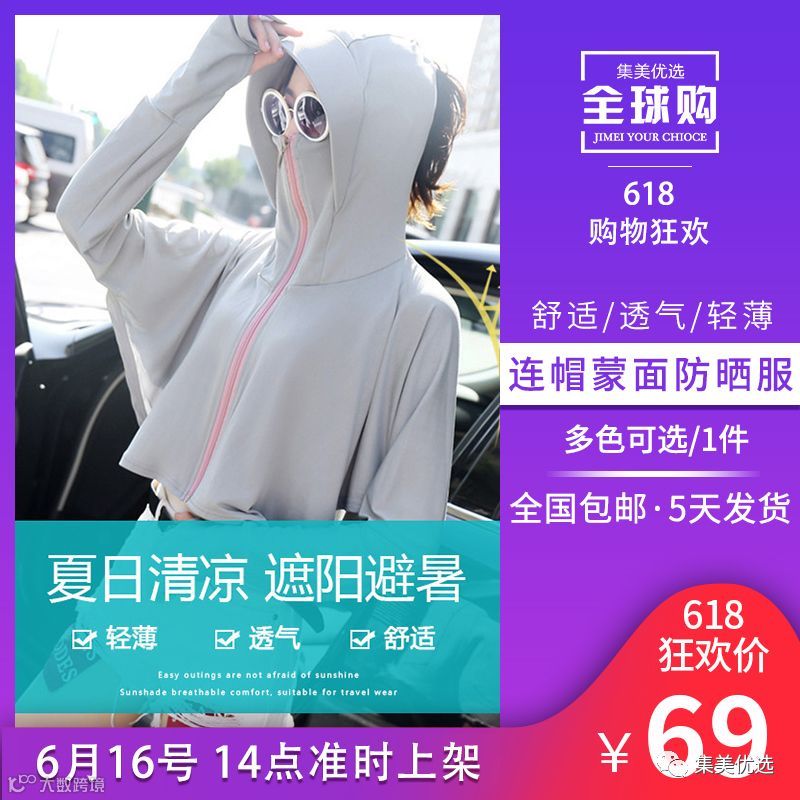 618大促款 连帽防紫外薄款防晒服SN8569 限量各50份!
