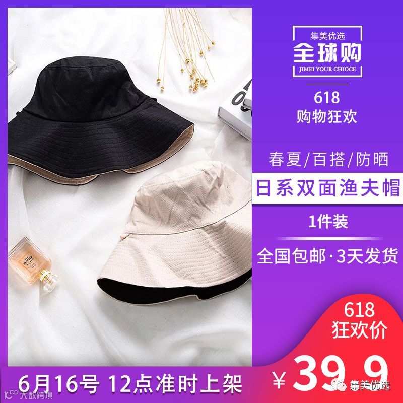 2 双面渔夫帽女日系大帽檐春夏百搭防晒遮阳帽子韩版网红ins太阳帽 限量各50份!