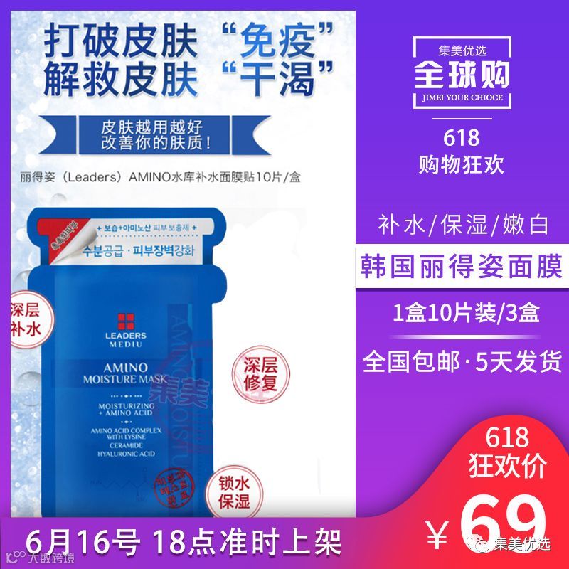 韩国Leaders丽得姿针剂水库面膜 补水保湿嫩白*3盒 限量500份!
