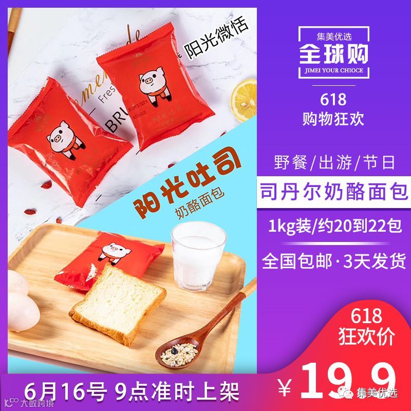 1 司丹尔阳光奶酪吐司面包片状独立小包早餐奶酪面包零食整箱1kg装 限量500份!