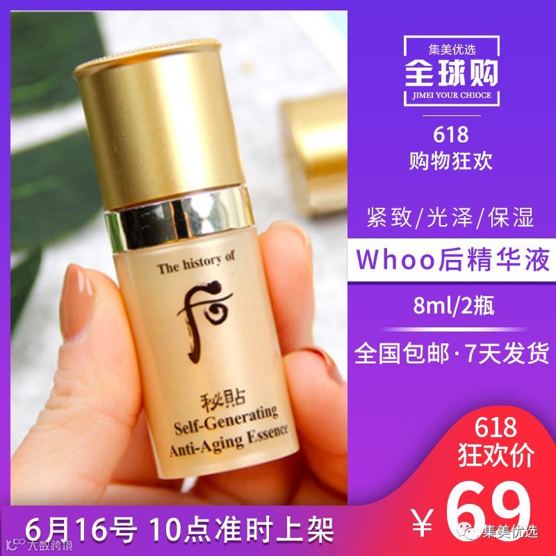 1 Whoo后自生密贴秘贴精华液中小样8ml焕然修护三合一2支 限量200份!