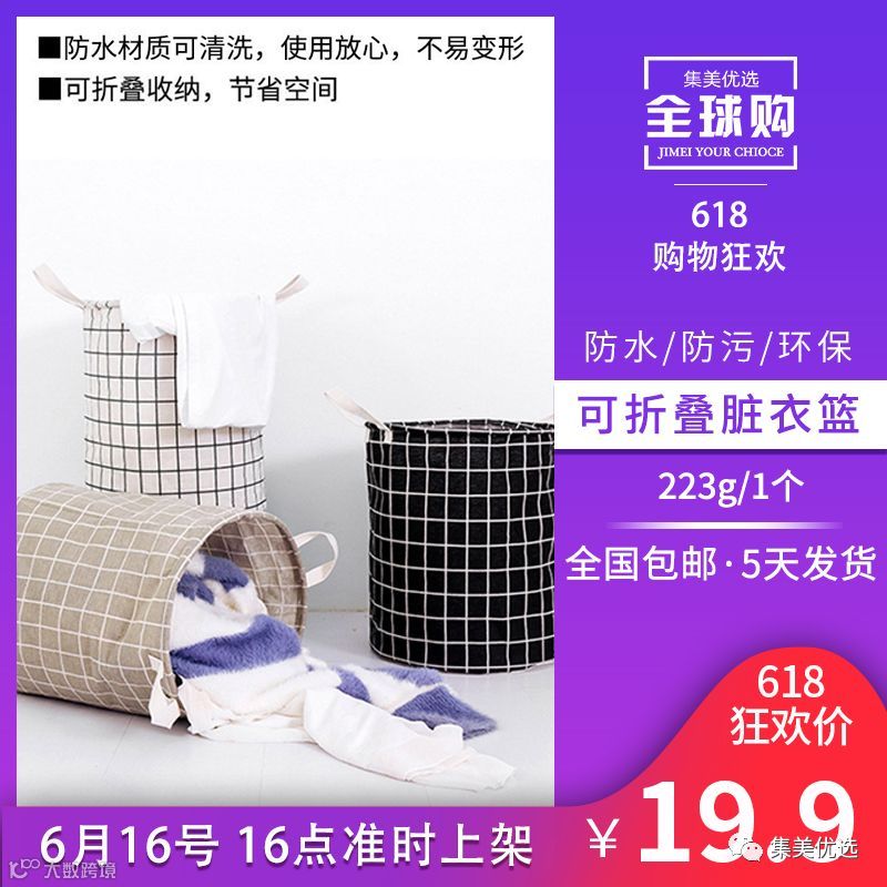 可折叠棉麻防水脏衣篮 限量各300份!