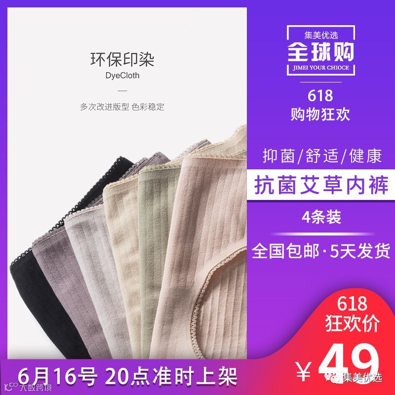4条装舒适抗菌艾草内裤 限量100条!