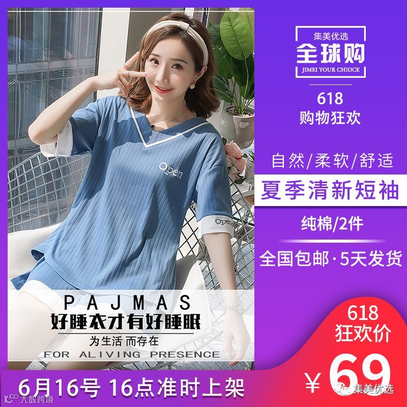 睡衣女夏短袖纯棉两件套装韩版清新YY101 限量各50份!