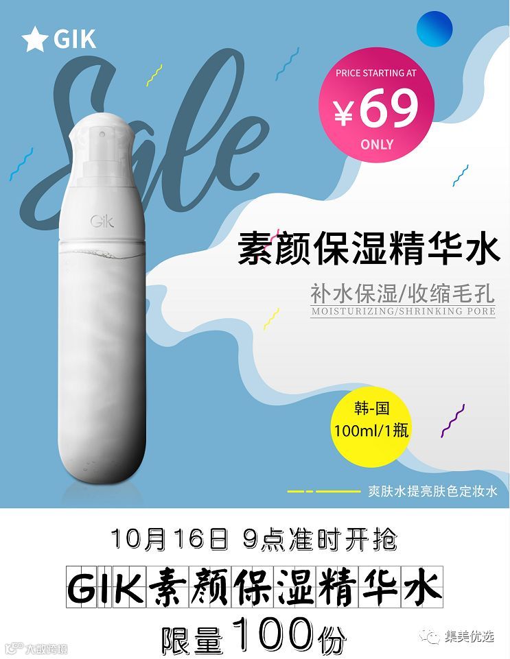 【福利团购】Gik素颜保湿精华水补水保湿收缩毛孔爽肤水提亮肤色定妆水