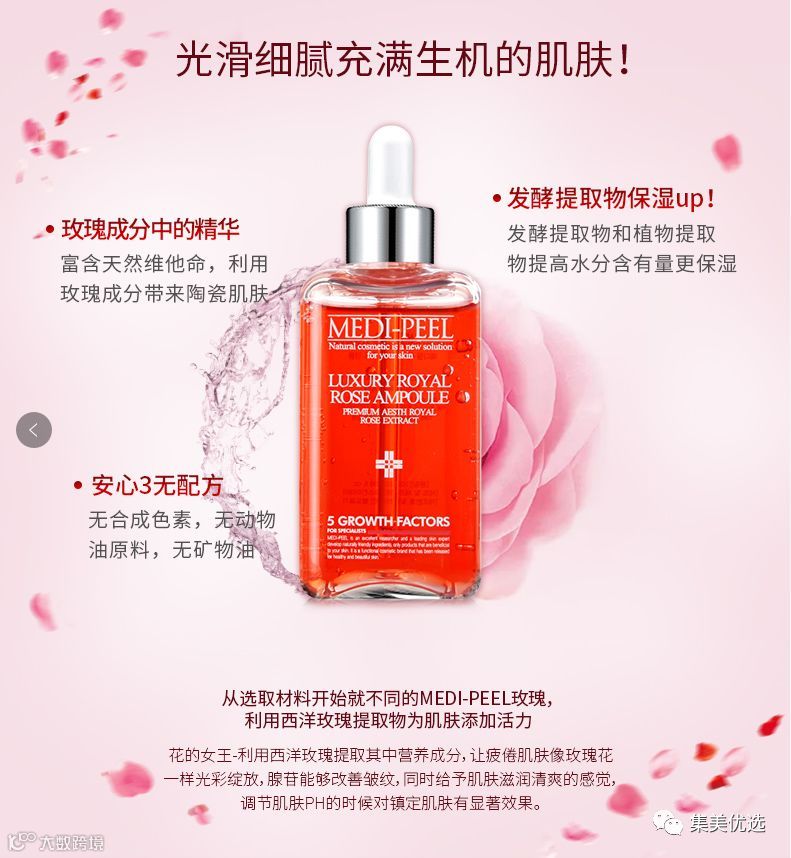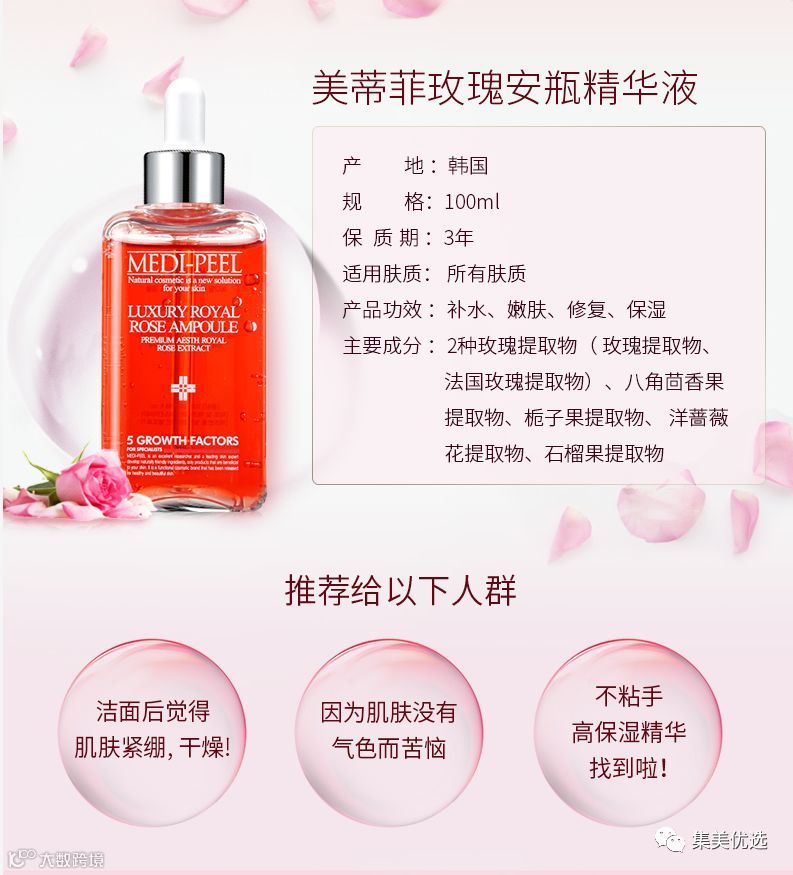 【福利团购】 韩国medipeel美蒂菲玫瑰安瓶精华肌底液 补水舒缓提亮滋润精华