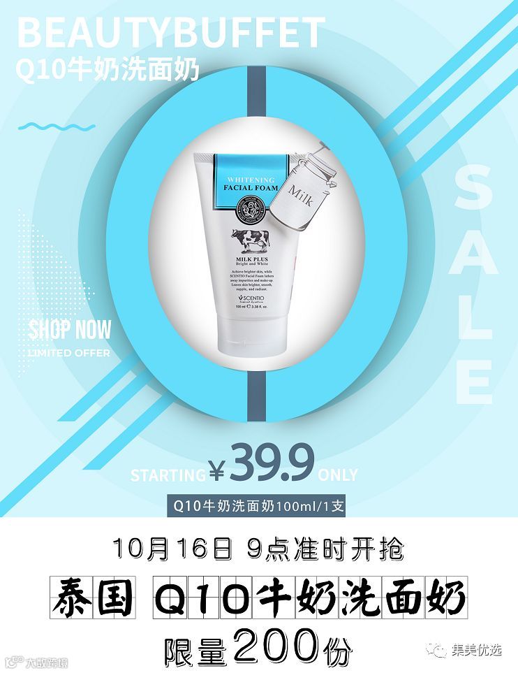 【福利团购】泰国 BeautyBuffet Q10牛奶洗面奶 100ml