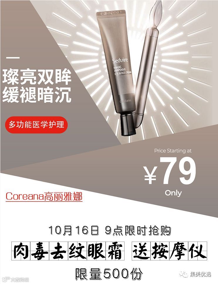 【福利团购】韩国Coreana高丽雅娜肉毒去纹眼霜男女士紧致淡化黑眼圈 送按摩仪