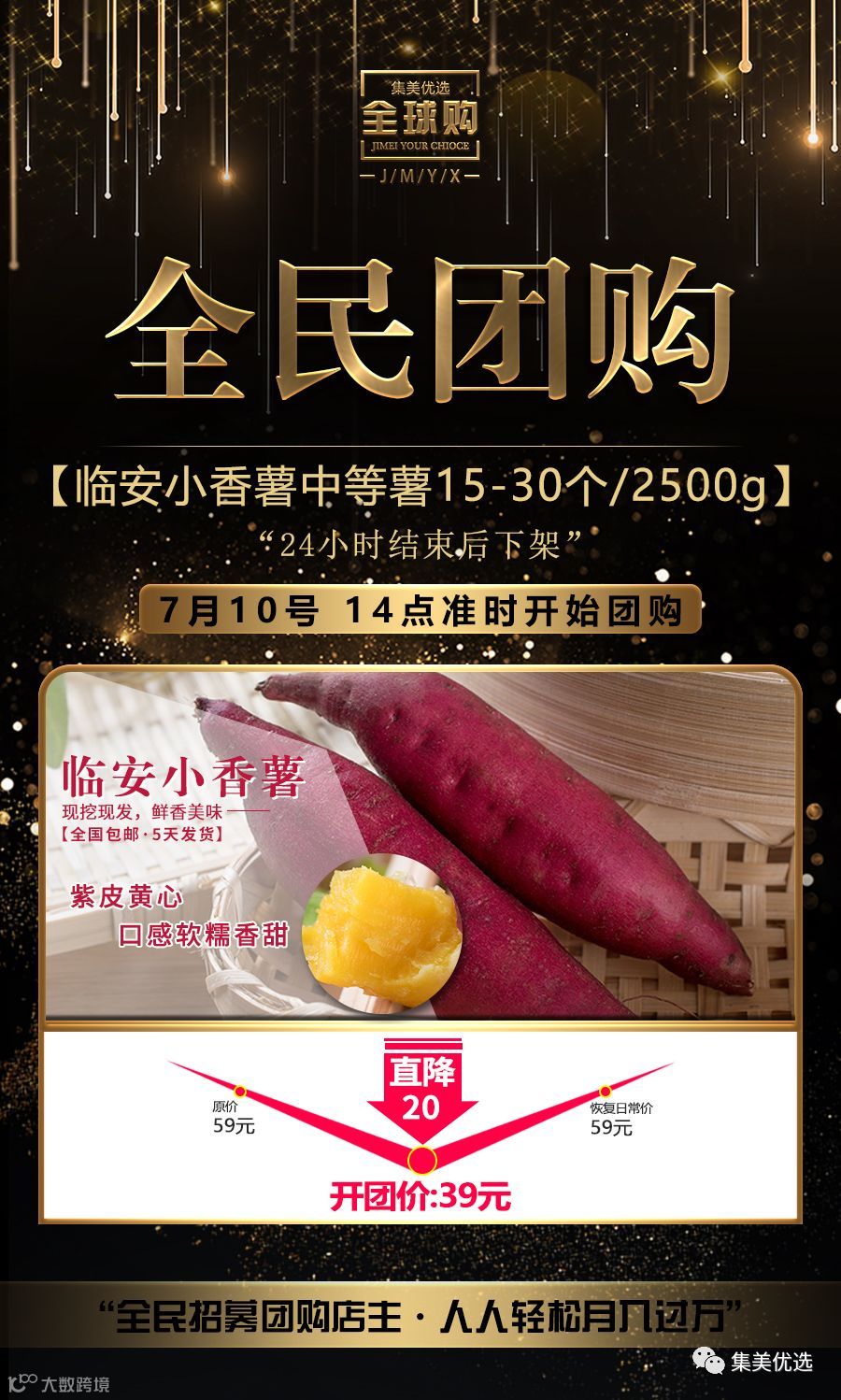 福利团购临安小香薯中等薯(单果60g-130g)中等(15-30个)2500g 限量200份!