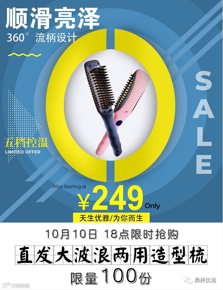 【福利团购】新品直发卷发两用造型梳陶瓷发热直发大波浪快速造型