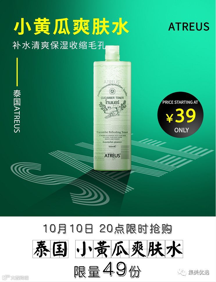 【福利团购】泰国ATREUS小黄瓜爽肤水青瓜VC化妆紧肤定妆补水清爽保湿收缩毛孔