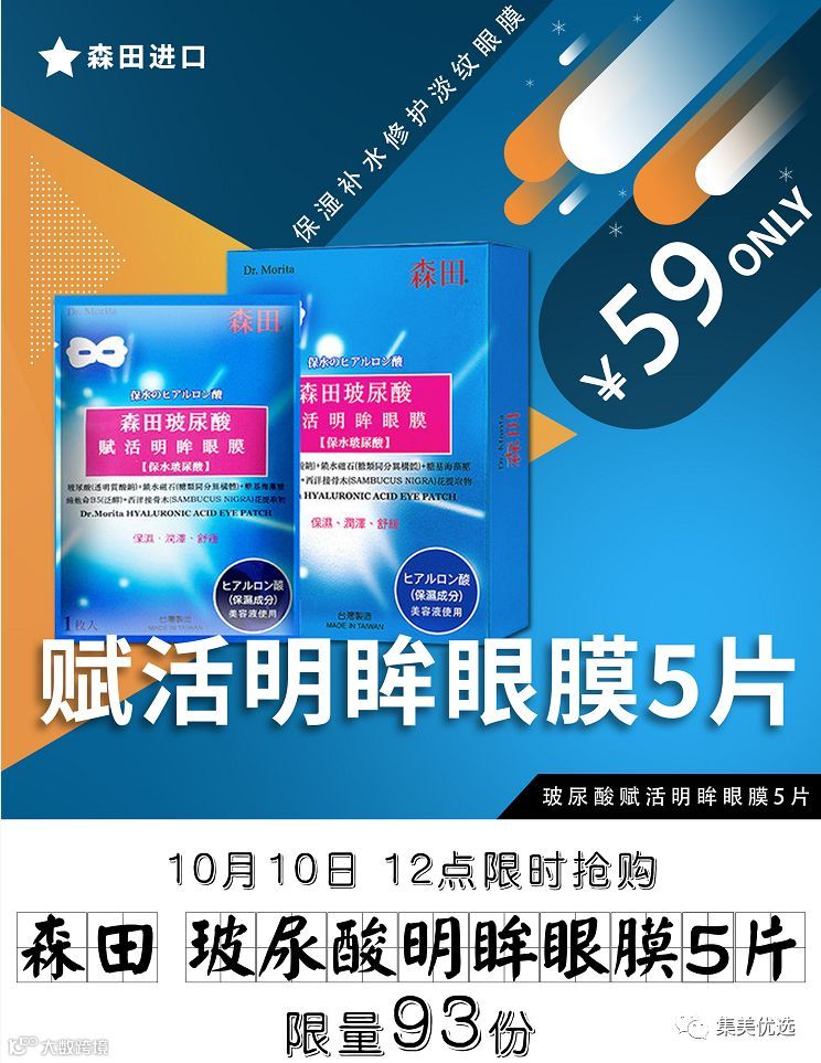 【福利团购】森田进口玻尿酸赋活明眸眼膜5片 保湿补水修护淡纹眼膜