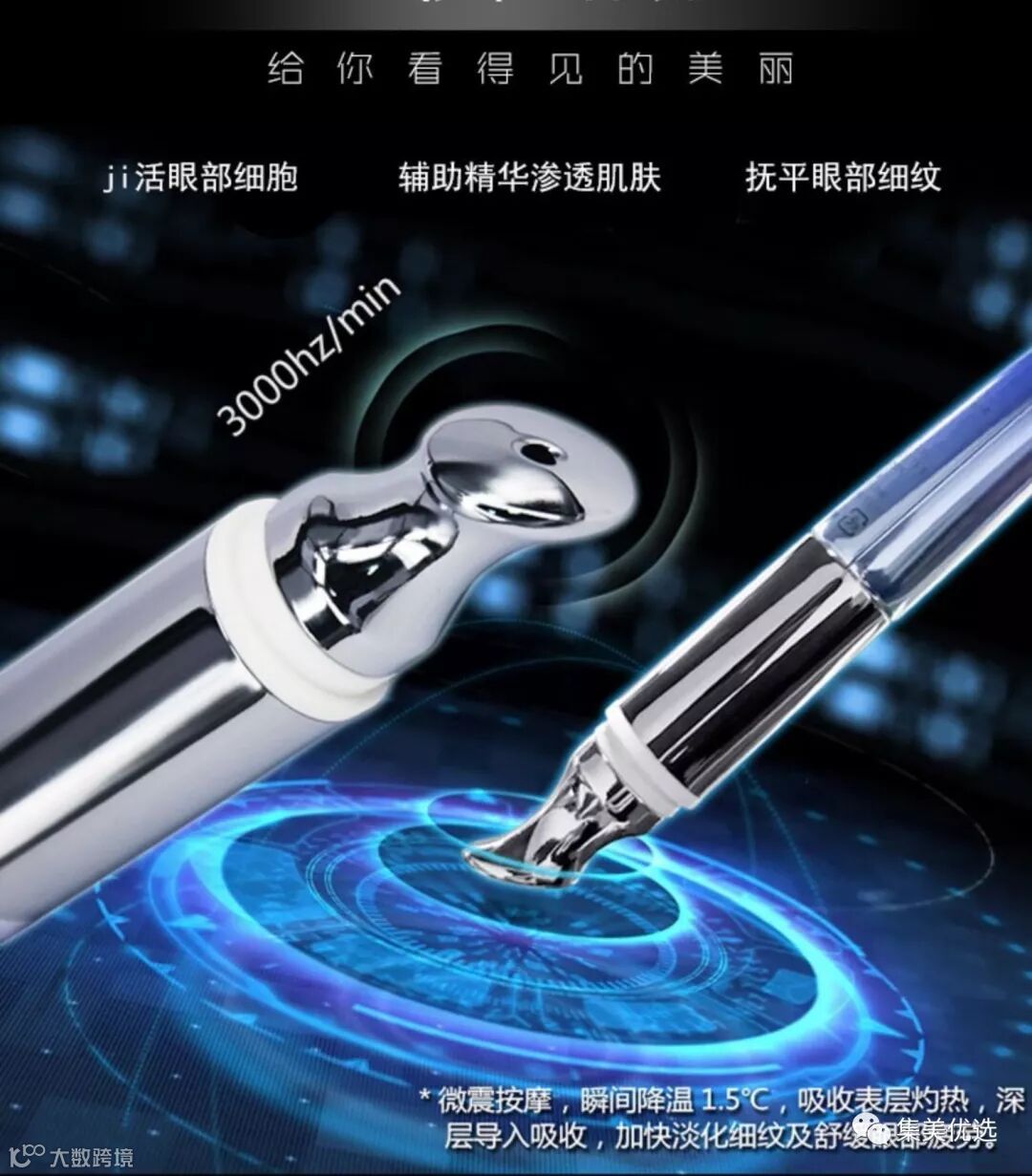 这样的设计使人体自我微电流产生负离子微波,让按摩头瞬间达到3000转微震,拒绝低端美容仪的表皮振动功能,激活眼部皮下细胞,促进眼部代谢和精华的吸收。