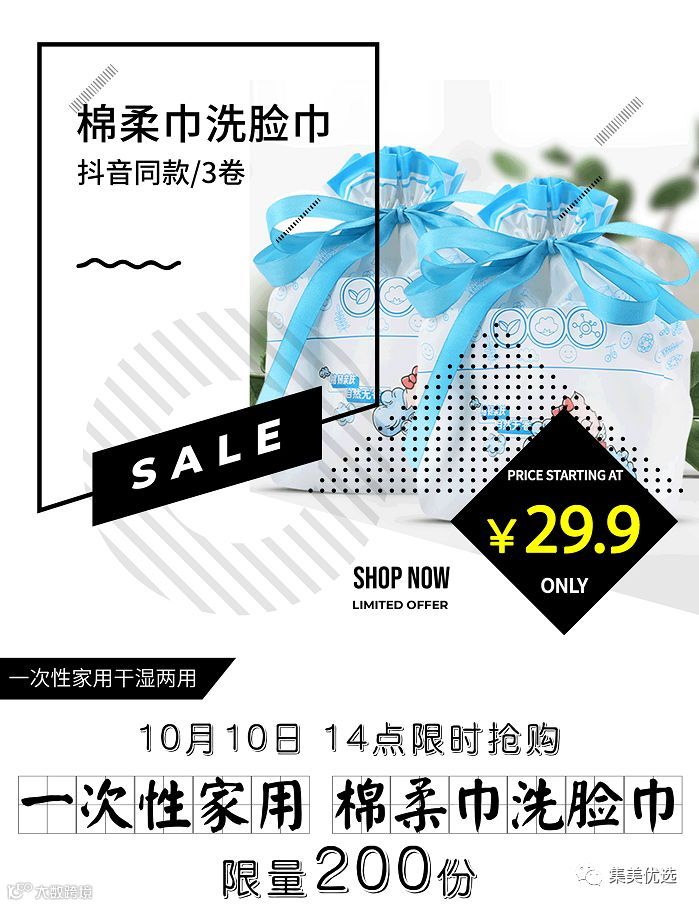 【福利团购】 棉柔巾洗脸巾一次性家用干湿两用抖音同款/3卷