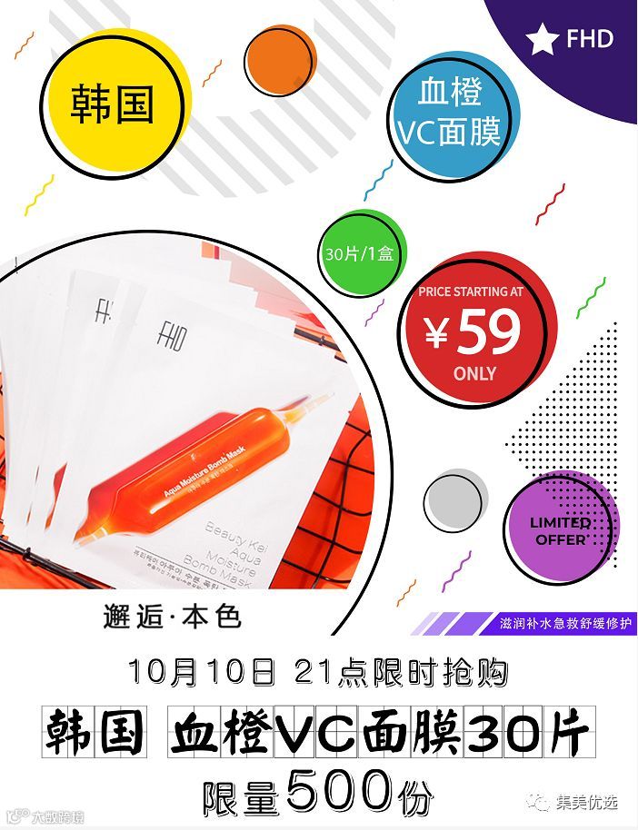 【福利团购】韩国FHD血橙VC面膜滋润补水急救舒缓修护保湿收缩毛孔紧致30片