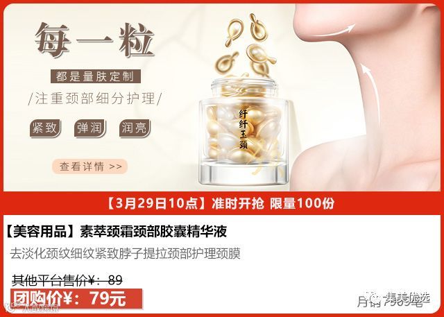 每一粒都是量肤定制,专为修护颈部肌肤研发,提供充足矜贵养分,30粒定量精华,每粒大小够一次用正合适!满满的多肽成分,让胶原蛋白擦掉你的颈纹!
