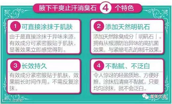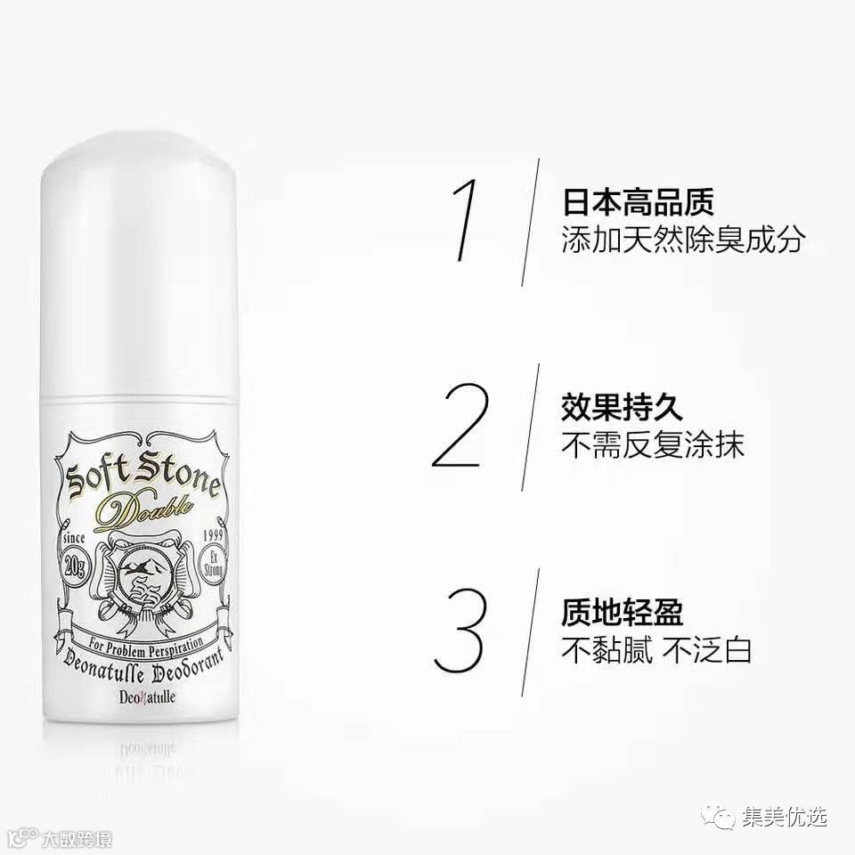 这款消臭石含有薄荷芳香及双倍天然消臭石成分,具有从根本上预防臭味的高抗菌效果,长时间令腋下清爽、舒适。