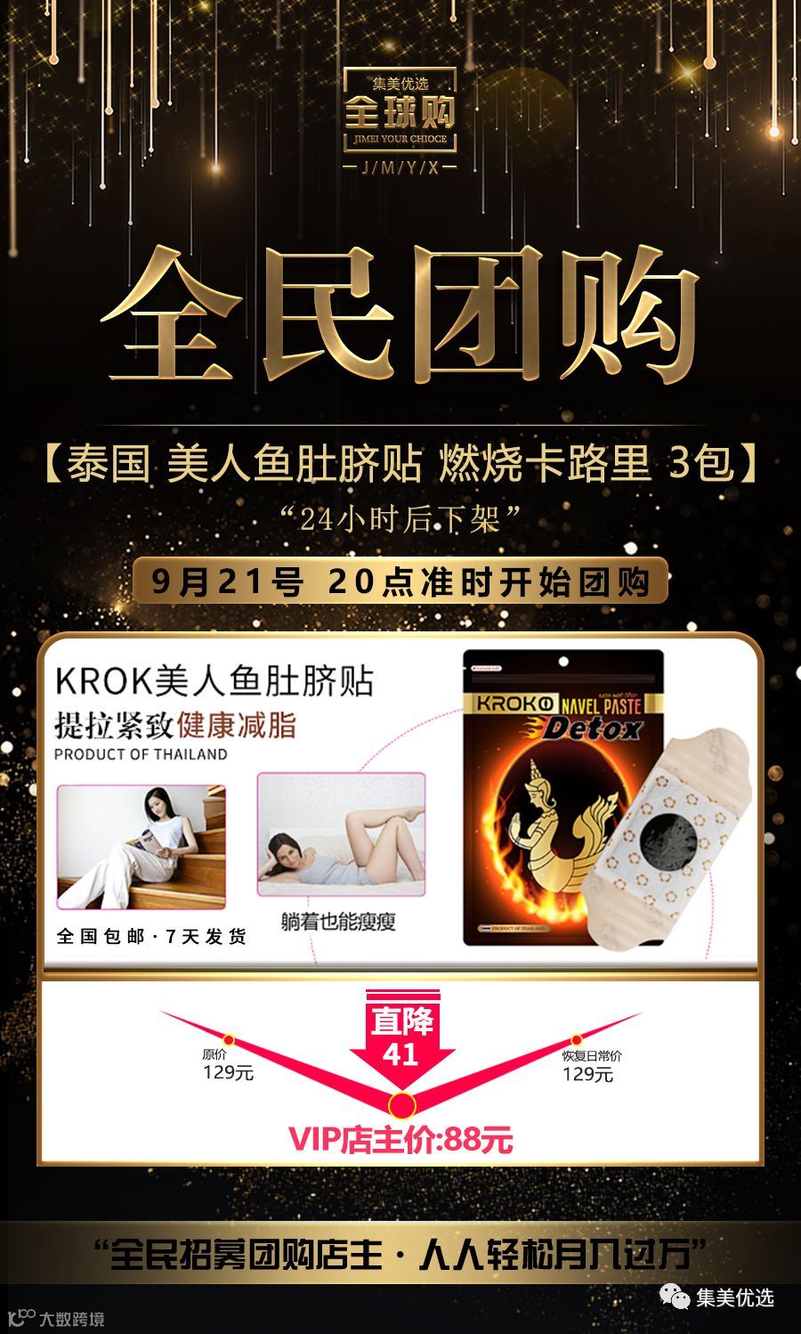 【福利团购】泰国KROKO美人鱼肚脐贴 燃烧卡路里 3包